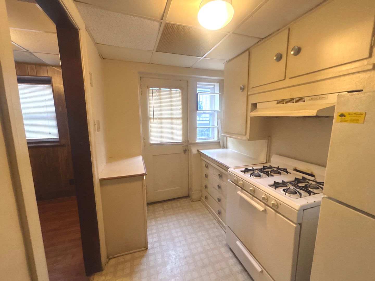 This cute apartment in Des Moines’ trendy Grand-Ingersoll neighborhood is situated on the ground level, for easy access. You can enter the apartment from the attractive terra-cotta lobby or from your private entrance to the kitchen. The apartment features a large living room, bedroom, and separate dining room, all with hardwood floors, plus new double-pane windows. Architectural features include built-in bookshelf, stained wood trim, and a vanity/make-up area outside the bathroom. For your convenience, a coin laundry is on premises.