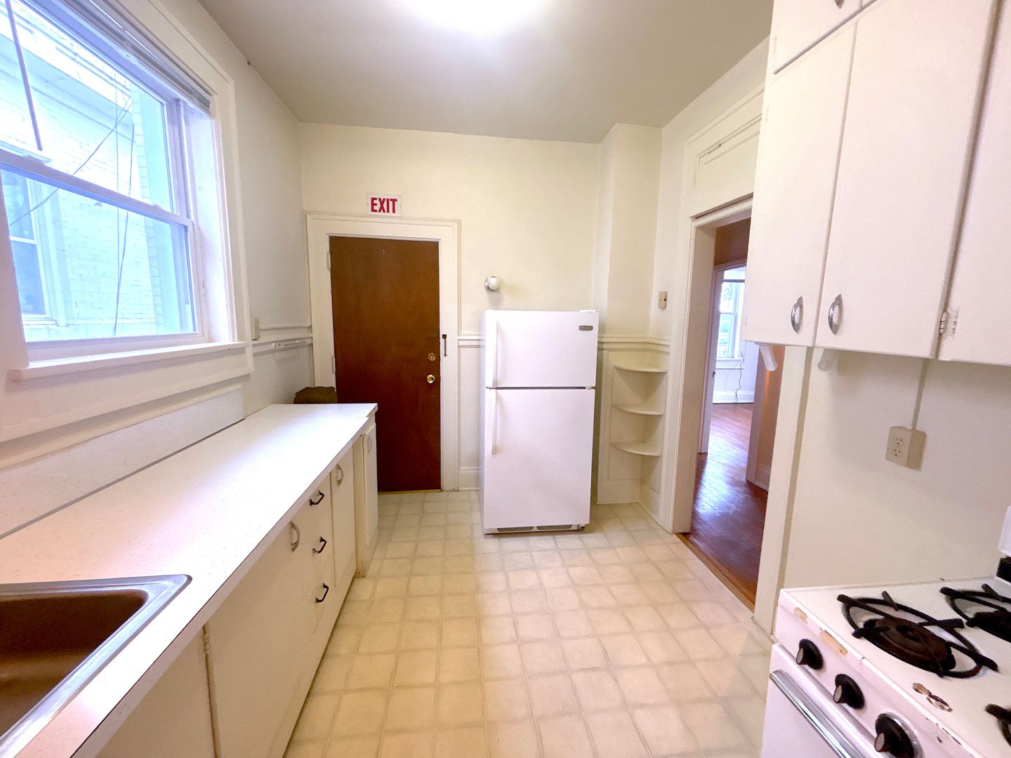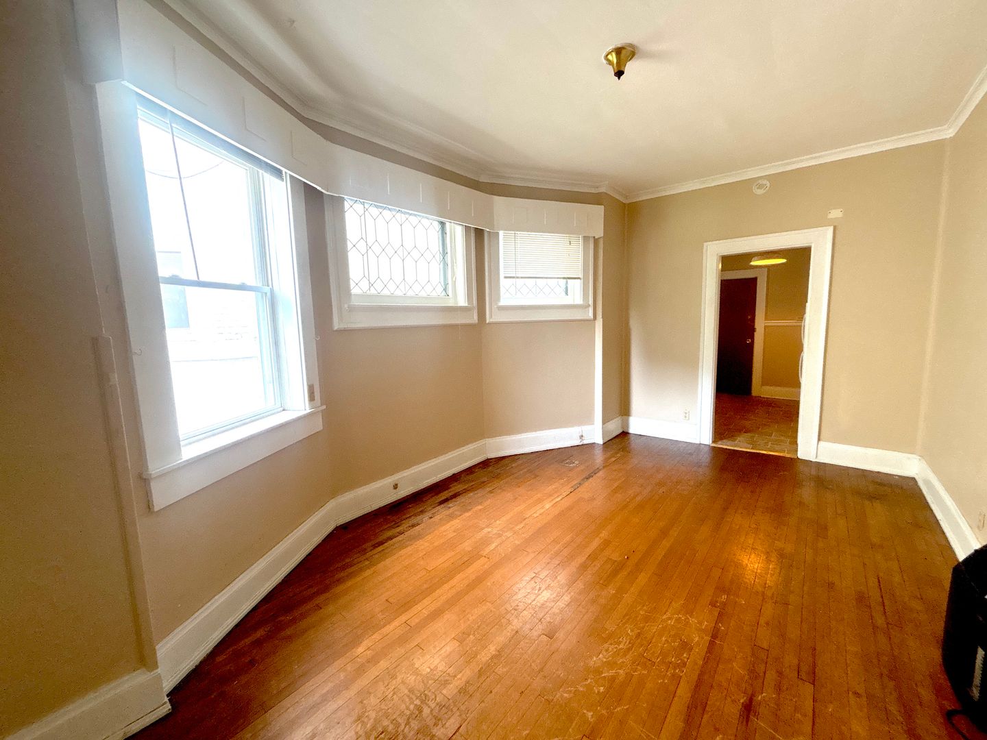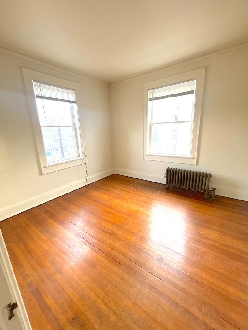 The 1BR Model at Grand Manor features refinished hardwood floors, living room with bow windows, light and bright bedroom, and full kitchen. There is a private entrance from the kitchen that leads to the parking area. Apartment has all-new double-pane, tilt-in windows.