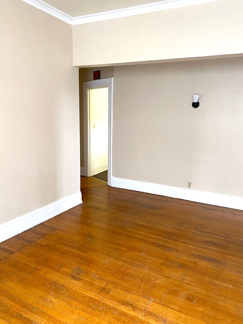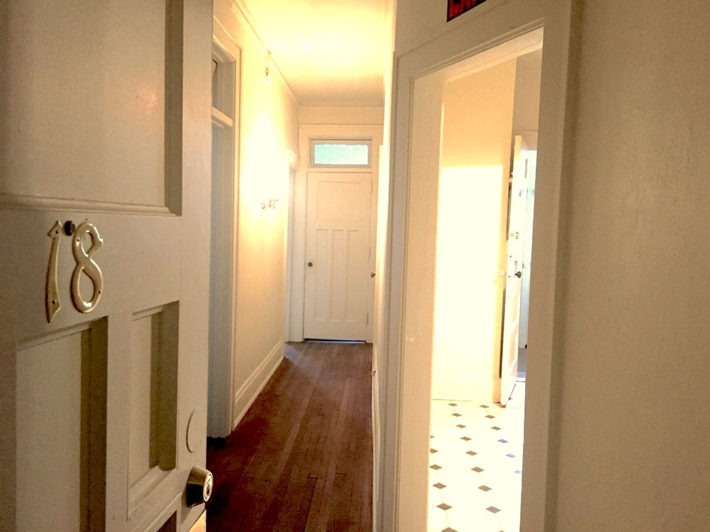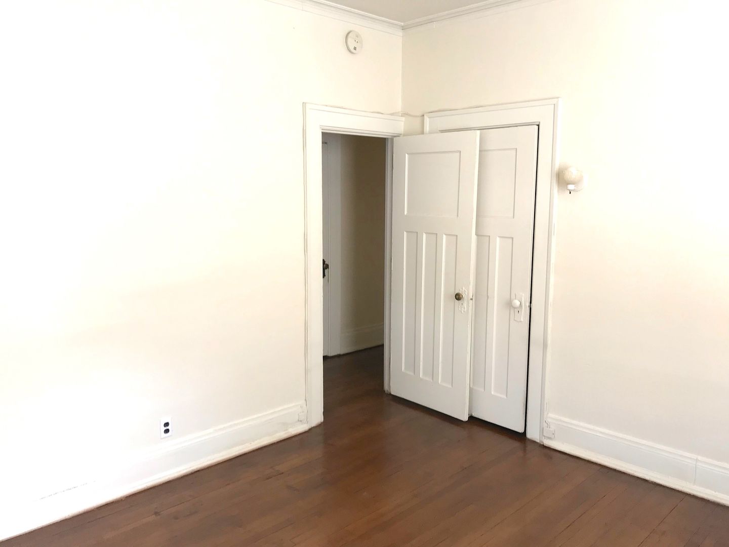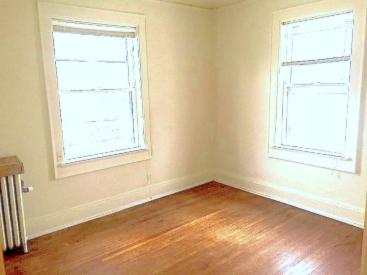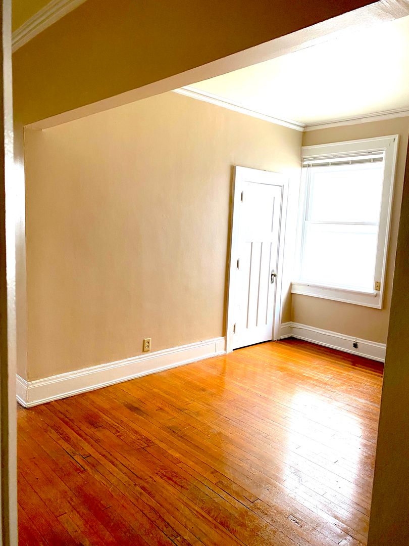 This apartment features a central hallway layout with hardwood floors, a spacious kitchen full of tall cabinets, and an enclosed rear porch with its own private entrance. The apartment has all-new double-pane, tilt-in windows. Rent includes one off-street parking space. A coin laundry is conveniently located in the building.